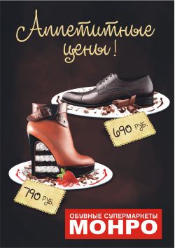 С 25.02.2012 по 31.03.2012 в обувных супермаркетах «Монро» женская обувь весенней коллекции по 790 руб., мужская обувь весенней коллекции - по 690 руб.!