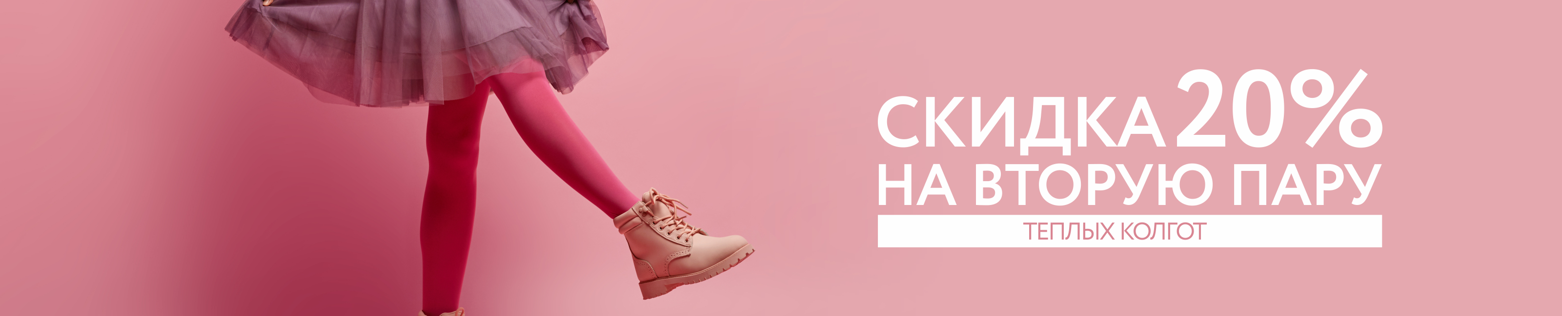 Условия акции: при покупке двух пар колготок плотностью от 95 до 250 ден из хлопка и шерсти, на вторую пару предоставляется скидка 20% от нижней цены по любому виду ценника.