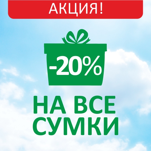 Только с 1 по 22 июня скидка 20% на весь ассортимент сумок при покупке любого товара (за исключением сумок) на сумму от 1000 рублей.