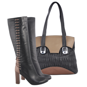 | Новое прочтение классики. Удивительно, как броско и нетривиально может выглядеть комбинация серого и черного! Обратите внимание на сумку — объемную и одновременно компактную. | Высокие сапоги с оригинальной декоративной шнуровкой прекрасно дополнит сумка, также сочетающая в себе кофейный и насыщенный черный цвет. |