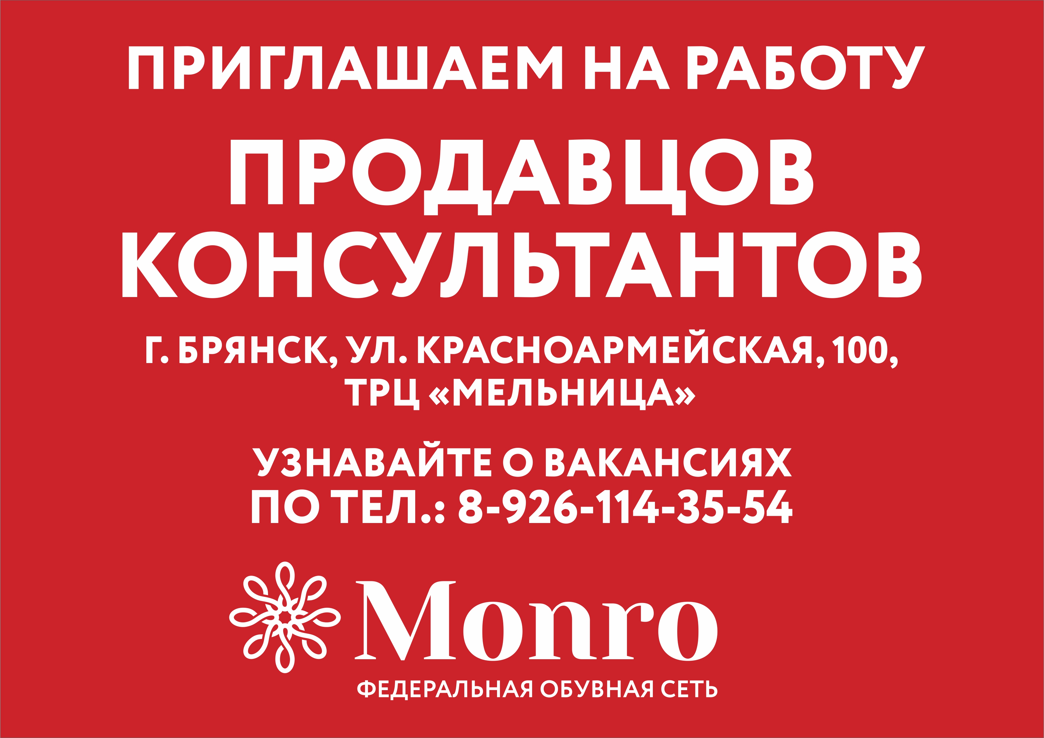Приглашаем на работу продавцов-консультантов в новый магазин «МОНРО»,